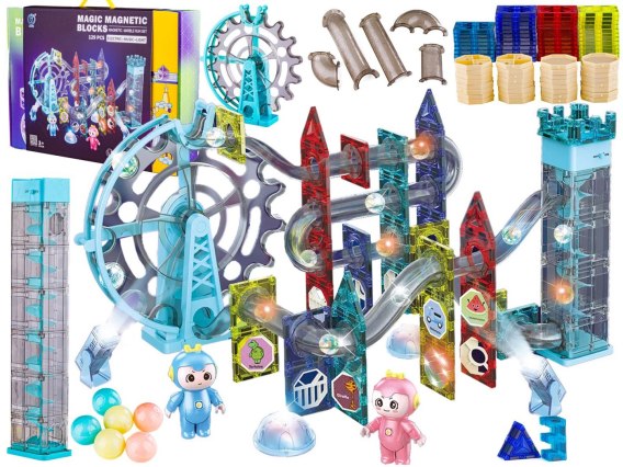Świecące Klocki Magnetyczne, Tor Kulkowy Dla Kulek 129 Elementów Kulodrom