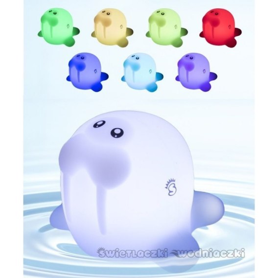 Pływająca silikonowa lampka LED zamieni kąpiel w przyjemną zabawę. Ciekawy kształt zwierzątka morskiego - MORSA oraz zmieniające się kolory sprawią, że maluch nie będzie obawiał się wody.