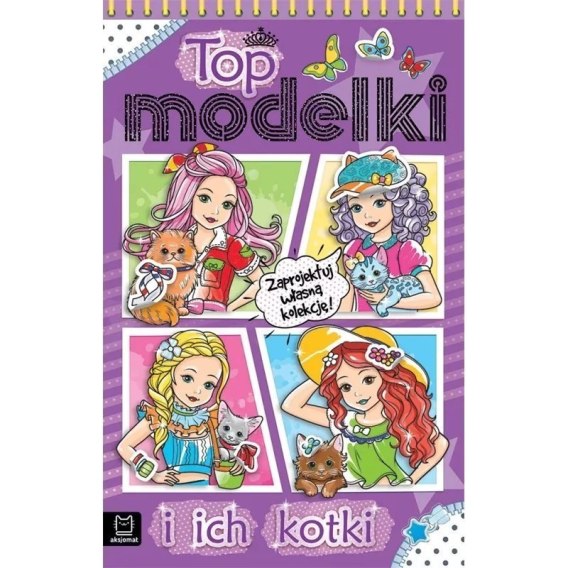 W "Top modelkach i ich kotkach" małe stylistki znajdą 20 sylwetek modelek oraz sylwetki kotów różnej rasy, które czekają na fantazyjne stroje! Zabawa polega na rysowaniu, kolorowaniu, ozdabianiu i naklejaniu ubrań. Projektowanie to fascynujące i kreatywne zajęcie!