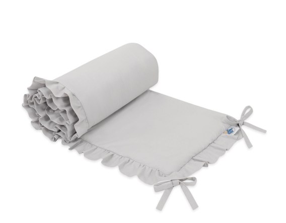 Uniwersalny ochraniacz z falbanką do łóżeczka niemowlęcego - szary