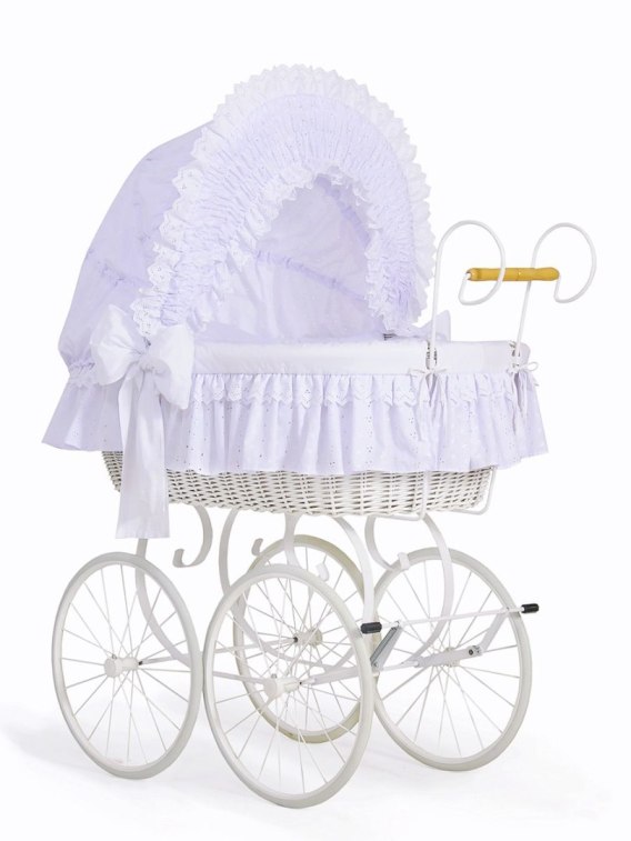 • Wiklinowy kosz Mojżesza Retro ze składaną budką Charlote - biały + biała pościel z koronką