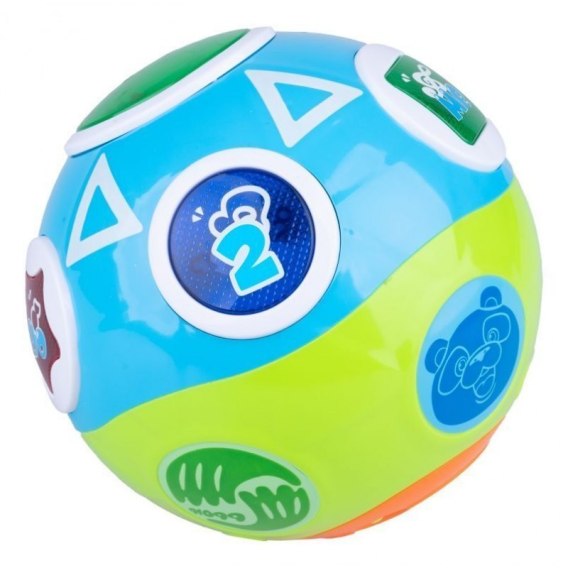 Rozkręć się razem z wirującą piłeczką, która uczy, bawi i zachęca do raczkowania! Zabawka mówi po polsku, ucząc nazw cyferek oraz kształtów, a także odtwarza wesołe melodie i błyska światełkami. Dodatkowo, zabawnie wiruje, „uciekając" przed maluchem i grzechocząc przy tym koralikami, ukrytymi w jednej ze ścianek. Przełącznik trybu umożliwi szybkie przejście z nauki w opcję zabawy oraz całkowite wyłączenie dźwięków po zakończonej zabawie.