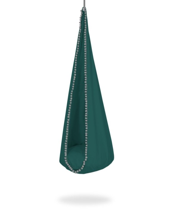 Huśtawka została wykonana w wysokiej jakości bawełny. Dwie warstwy tkaniny zwiększają stabilność i bezpieczeństwo kokonu, mocne taśmy wzmacniają huśtawkę a staranna praca ręczna gwarantuje najwyższą jakość. Kokon ozdobiony dekoracyjnymi pomponami. W komplecie wygodna poduszka dwustronna, rozbieralna do prania. Zewnętrzny pokrowiec zapinany na kryty zameczek, łatwy do ściągnięcia.