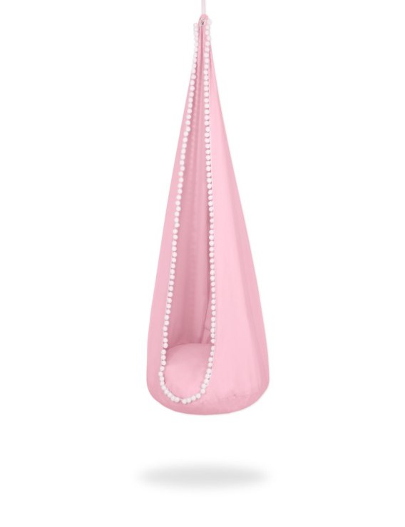 Huśtawka została wykonana w wysokiej jakości bawełny. Dwie warstwy tkaniny zwiększają stabilność i bezpieczeństwo kokonu, mocne taśmy wzmacniają huśtawkę a staranna praca ręczna gwarantuje najwyższą jakość. Kokon ozdobiony dekoracyjnymi pomponami. W komplecie wygodna poduszka dwustronna, rozbieralna do prania. Zewnętrzny pokrowiec zapinany na kryty zameczek, łatwy do ściągnięcia.