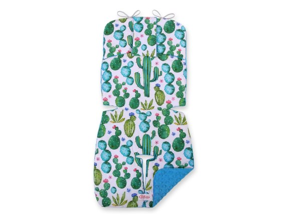 Dwustronna-wykonana ze 100% bawełny oraz przyjemnego w dotyku mięciutkiego polaru minky. Specjalne atestowane wypełnienie wkładki gwarantuje optymalną sprężystość i miękkość. Praktyczna wkładka chroni delikatną skórę dziecka przed syntetycznym obiciem wózka. Zapewnia wygodę podczas spaceru. Zabezpiecza wózek przed zabrudzeniami. Wkładka posiada 3 praktyczne otwory i dwa głębokie wcięcia na 5-punktowe pasy bezpieczeństwa. Jest uniwersalna, pasuje do większości rodzajów wózka.