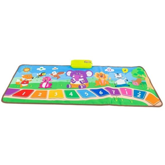 Muzyczna mata do zabawy z pianinem. Ta zabawka idealnie nadaje się do aktywnego spędzania czasu z dzieckiem. Skacząc, naciskając kolorowe guziki oraz zwierzęta dziecko uruchamia różnego rodzaju melodie lub odgłosy zwierząt.