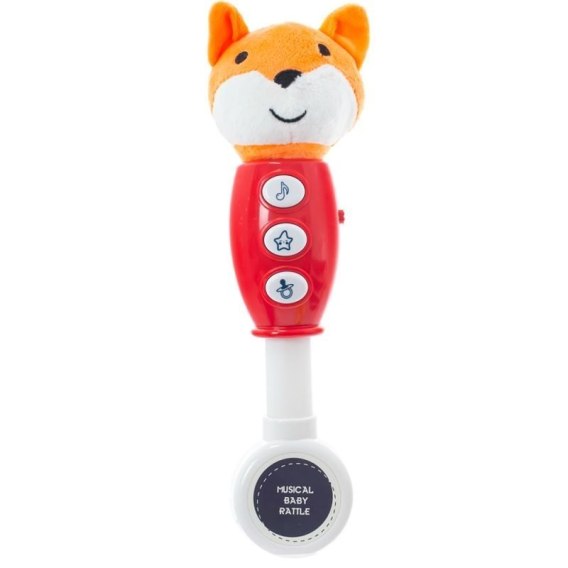 Zabawka pałka dźwiękowa - Lisek. Przeznaczona dla dzieci powyżej 3 miesiąca życia. Wykonana z najwyżej jakości materiału, główka zabawki z miękkiego weluru, moduł grający oraz wygodna rączka do trzymania. Przyjemne dźwięki rozbudzą wyobraźnię Twojej pociechy oraz zaciekawią.