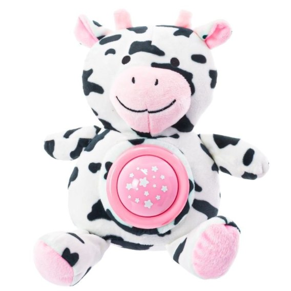 Zabawka pluszowa przyjaciel KRÓWKA to miękka pluszowa przytulanka z lampką w brzuszku zmieniająca kolory, miłe spokojne melodyjki, naturalne odgłosy szumu wody śpiewu ptaków.
