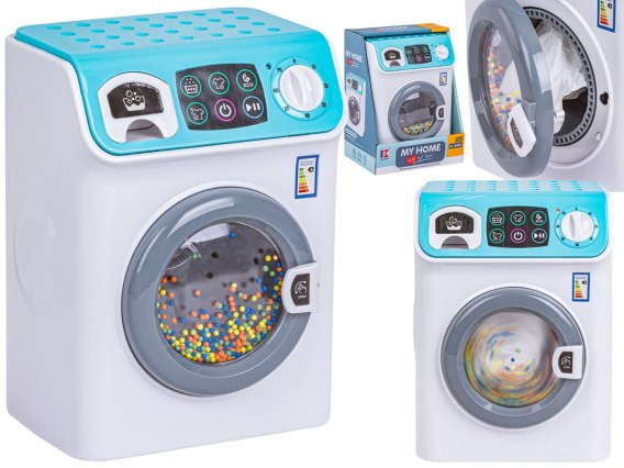 Zabawka świetnie imituje działanie prawdziwego sprzętu gospodarstwa domowego. Posiada otwierane drzwiczki, ruchomy bęben oraz wysuwaną szufladkę na proszek.