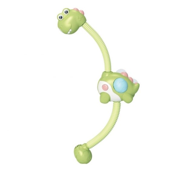Czas na prysznic z zakręconym Dino, którego oczy wirują jak szalone! Przymocuj tego wesołka do ściany wanny za pomocą przyssawek, umieść pompkę w wodzie i naciśnij przycisk, aby uruchomić prysznic. Szyja zwierzaka jest giętka, dzięki czemu możesz zmieniać kierunek wytryskiwania wody. Na dinusiowym brzuchu znajdziesz niespodziankę - wyjmowaną piłeczkę, która zmieni się w psikawkę, gdy tylko napełnisz ją wodą. Zabawka posiada akumulator, w zestawie znajduje się kabel USB do ładowania.