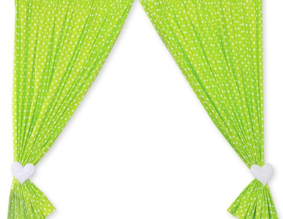 • Zasłonki do pokoju dziecięcego- Wiszące serduszka białe grochy na zielonym tle