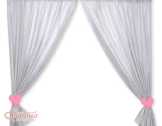 Zasłonki do pokoju dziecięcego 155x155cm- szare z różowymi serduszkami