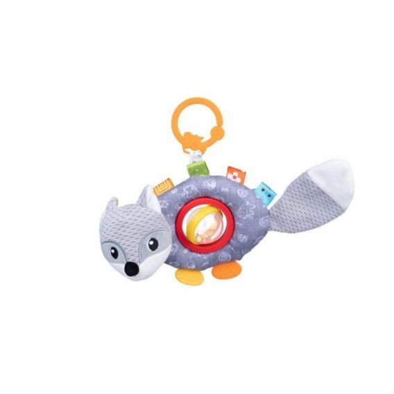 Grzechoczący lis zabawi malucha, zapewniając mu zajęcie na długi czas! W jego brzuszku kryje się kula wypełniona grzechoczącymi koralikami, a jego grzbiet zdobią kolorowe metki o zróżnicowanych fakturach. To jeszcze nie koniec niespodzianek! Ogon i uszka lisa zabawnie szeleszczą, stymulując zmysły dziecka. Praktyczna zawieszka pozwoli przymocować zabawkę w wybranym miejscu.