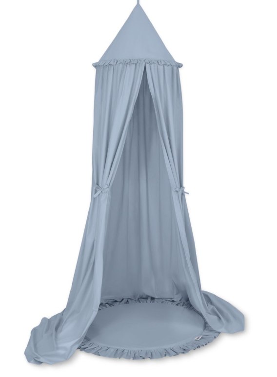 Zestaw: baldachim wiszący do pokoju dziecięcego bawełniany i mata z falbanką - brudny niebieski