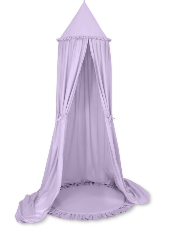 Baldachim można łatwo zamontować do sufitu. Jest długi ok. 260cm, dzięki czemu swobodnie ułoży się na ziemi, tworząc doskonałą kryjówkę i miejsce do zabawy.