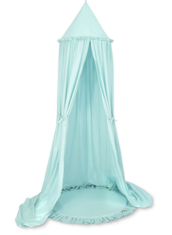 Zestaw: baldachim wiszący do pokoju dziecięcego bawełniany i mata z falbanką - jasna mięta