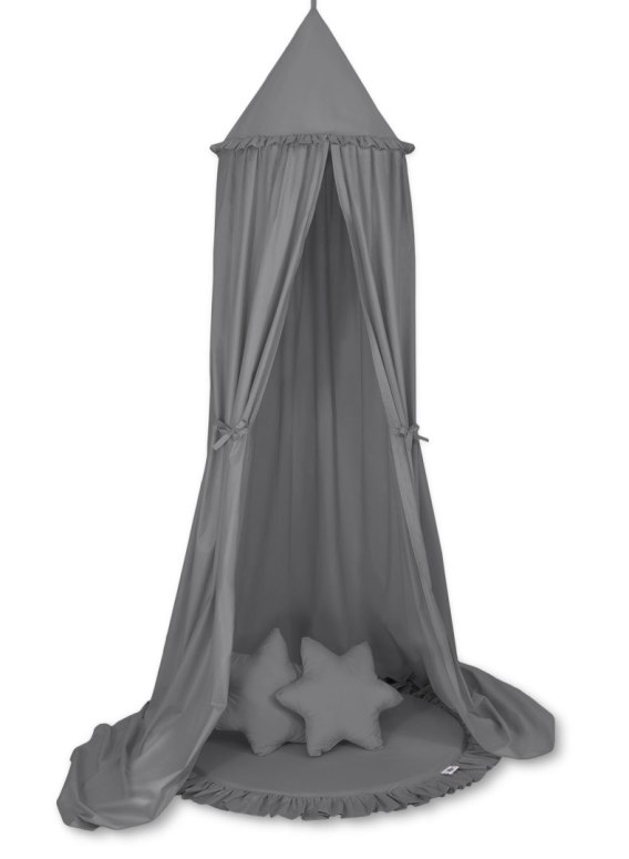 Zestaw: baldachim wiszący do pokoju dziecięcego, mata z falbanką, poduszki - antracyt