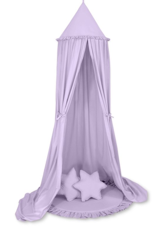 Baldachim można łatwo zamontować do sufitu. Jest długi ok. 260cm, dzięki czemu swobodnie ułoży się na ziemi, tworząc doskonałą kryjówkę i miejsce do zabawy.