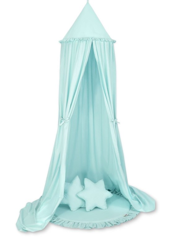 Zestaw: baldachim wiszący do pokoju dziecięcego, mata z falbanką, poduszki - jasna mięta